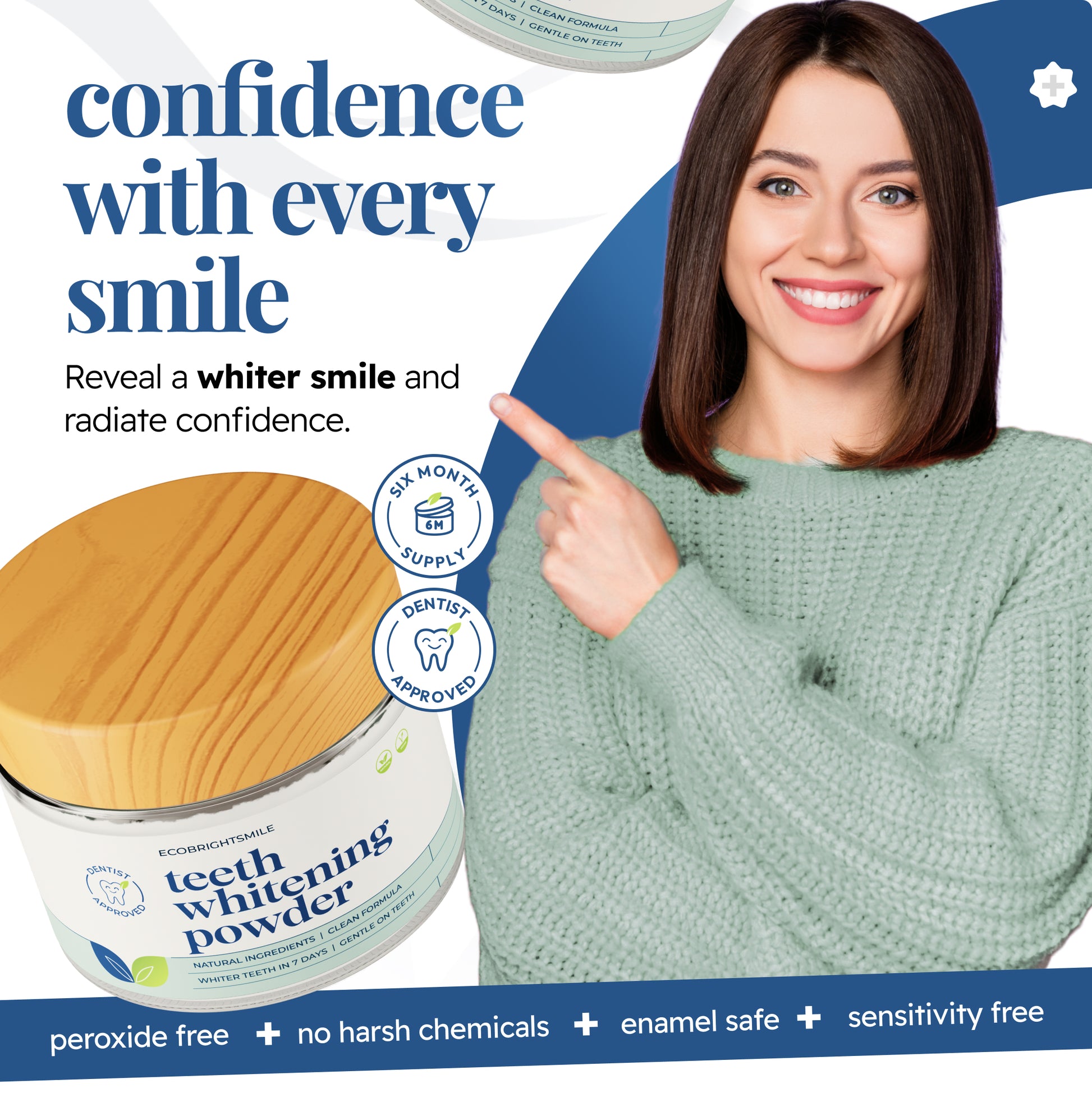 Using the EcoBrightSmile Teeth Whitening Powder is simple, just dampen your toothbrush, dip it lightly into the powder, and brush for 2–4 minutes. Use once or twice daily, depending on your routine.